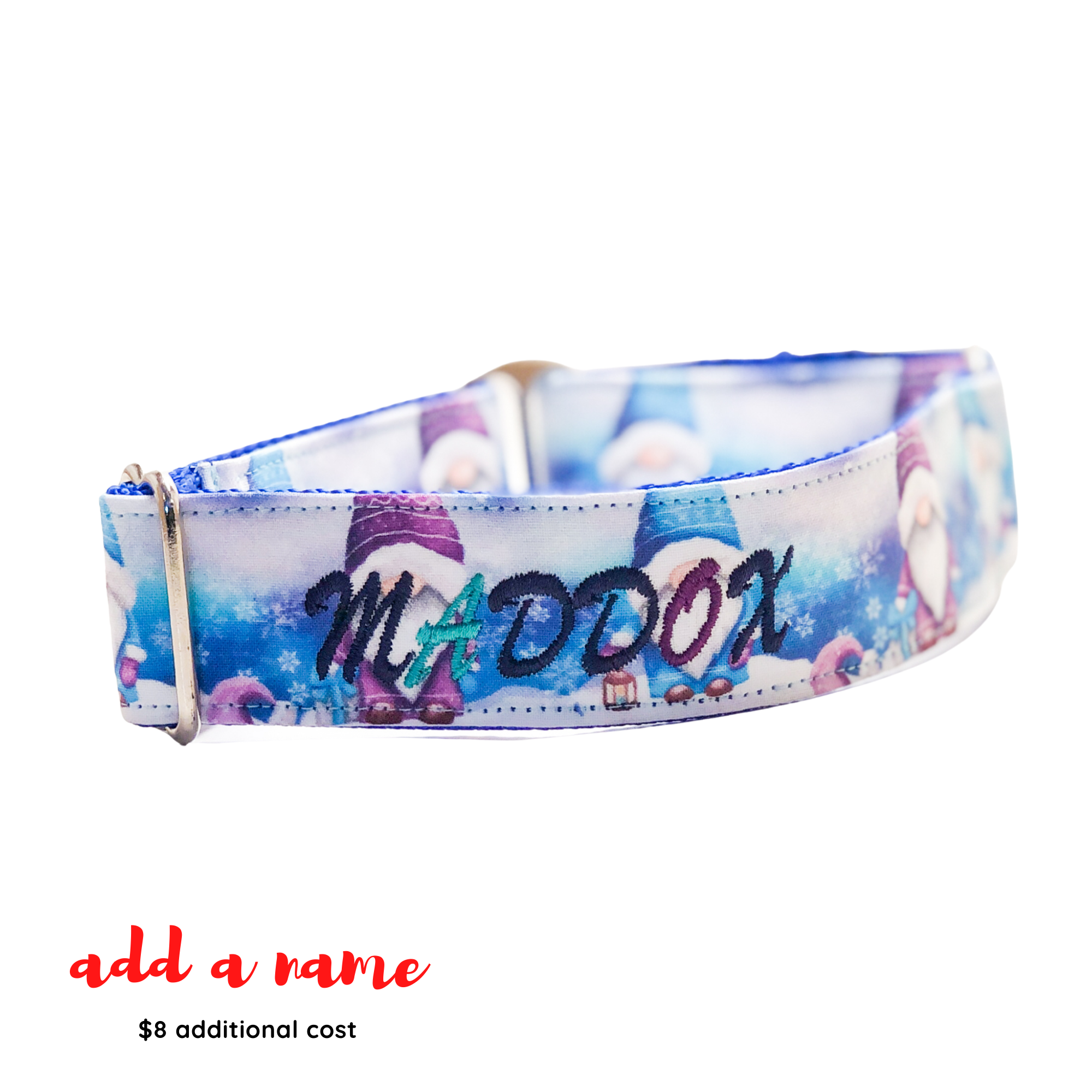 Blue and purple gnomes gifting presents in the snow. Our holiday Christmas/winter collection.