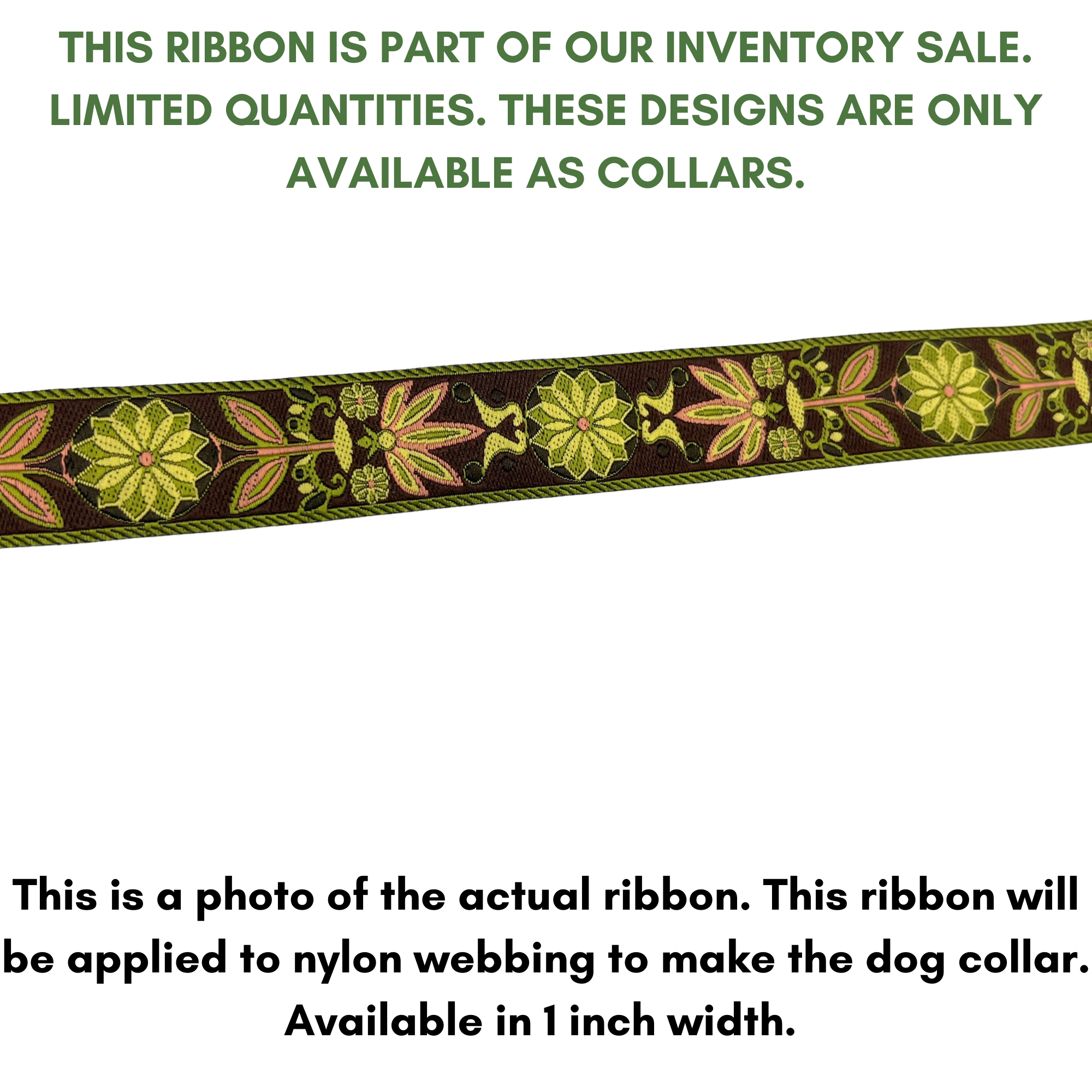Brown/Gold Marigold jacquard ribbon dog collar.