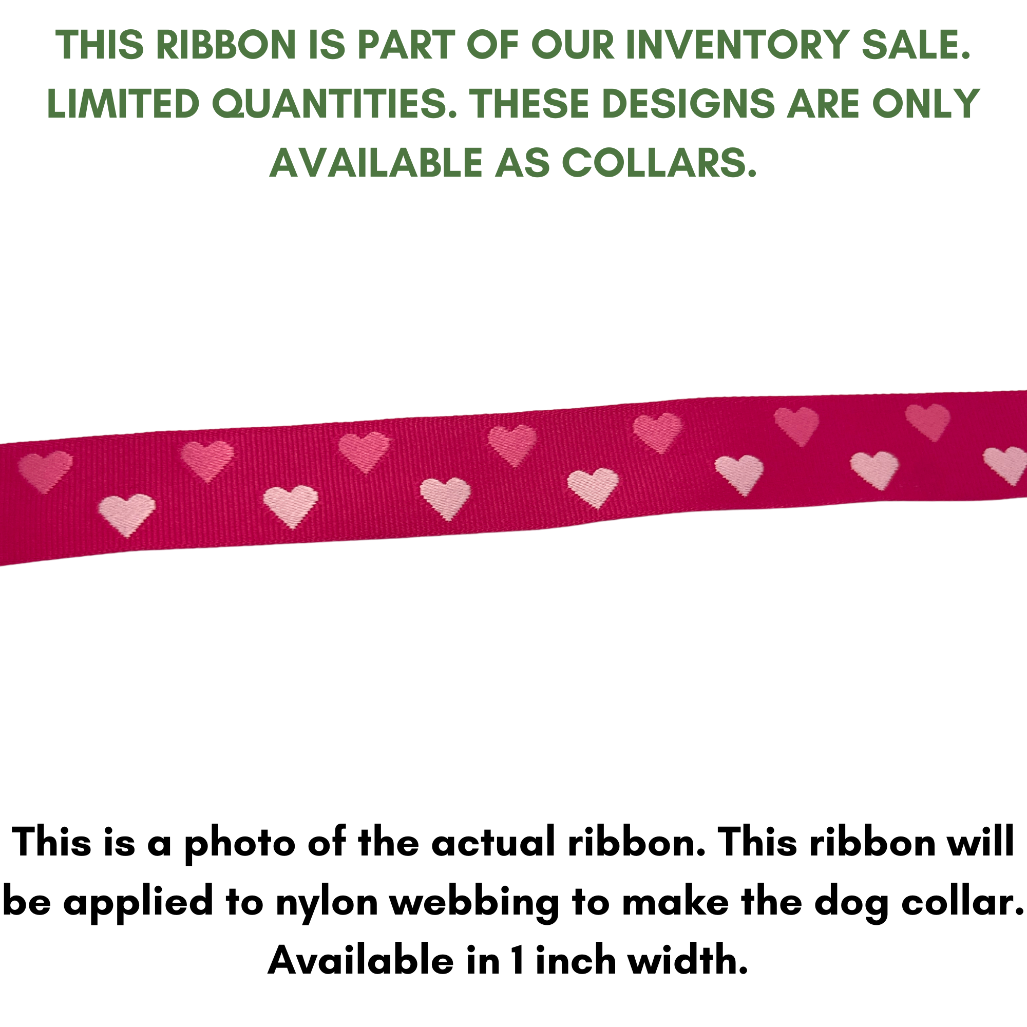 Pink Hearts jacquard ribbon dog collar.