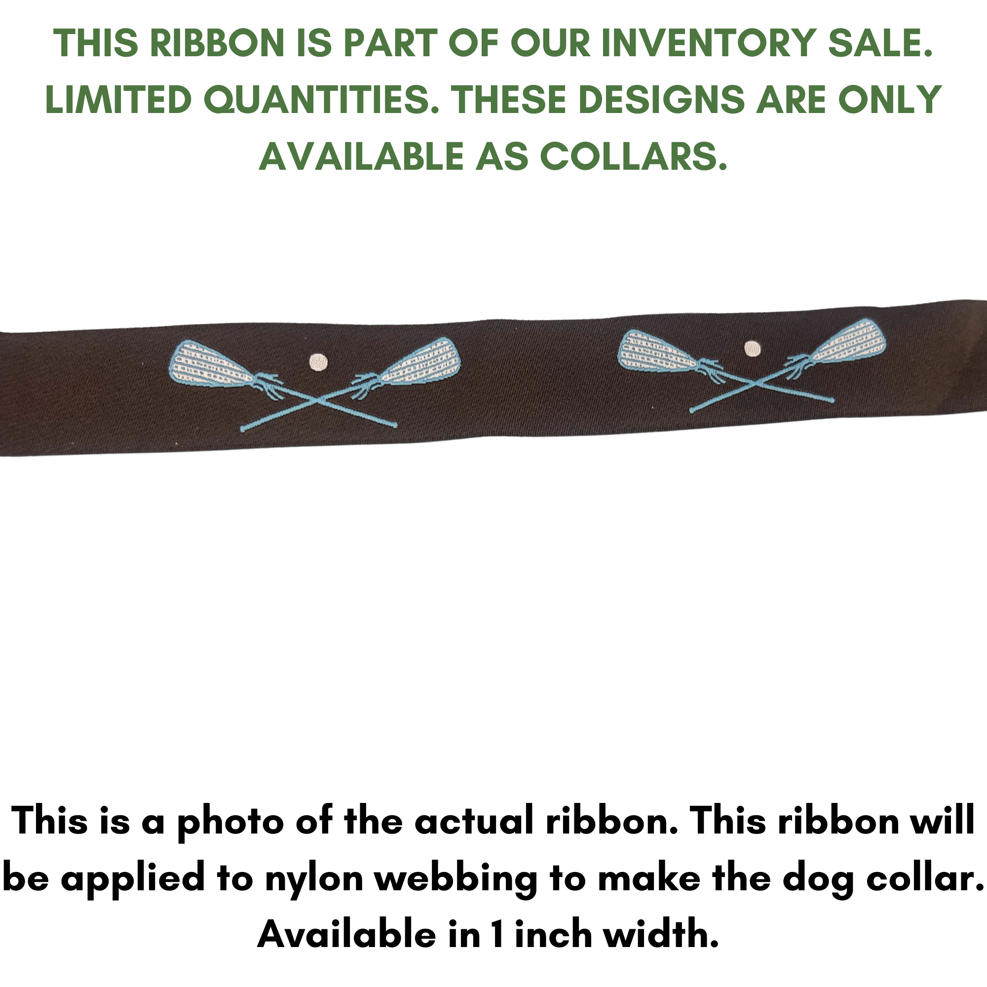 Dark Brown/Blue Lacrosse Sticks jacquard ribbon dog collar.