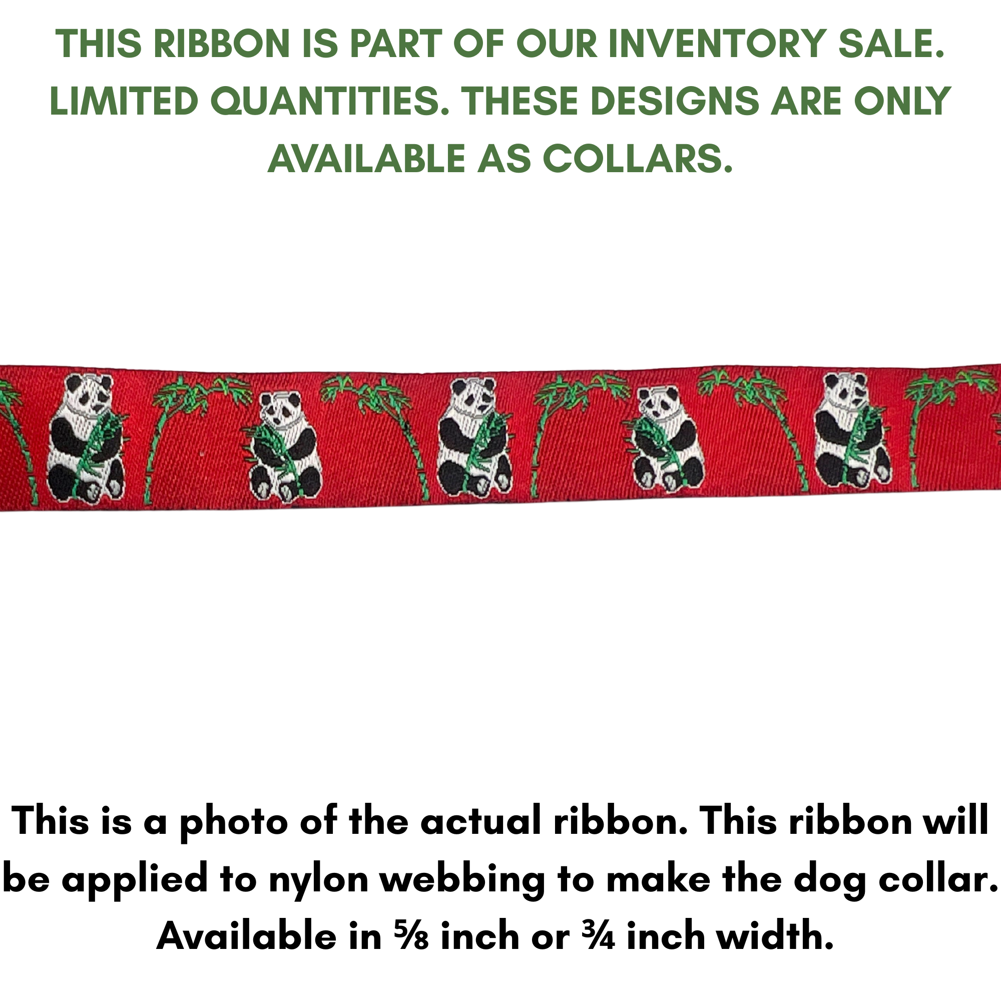 Pandas and Bamboo on Red jacquard ribbon dog collar.