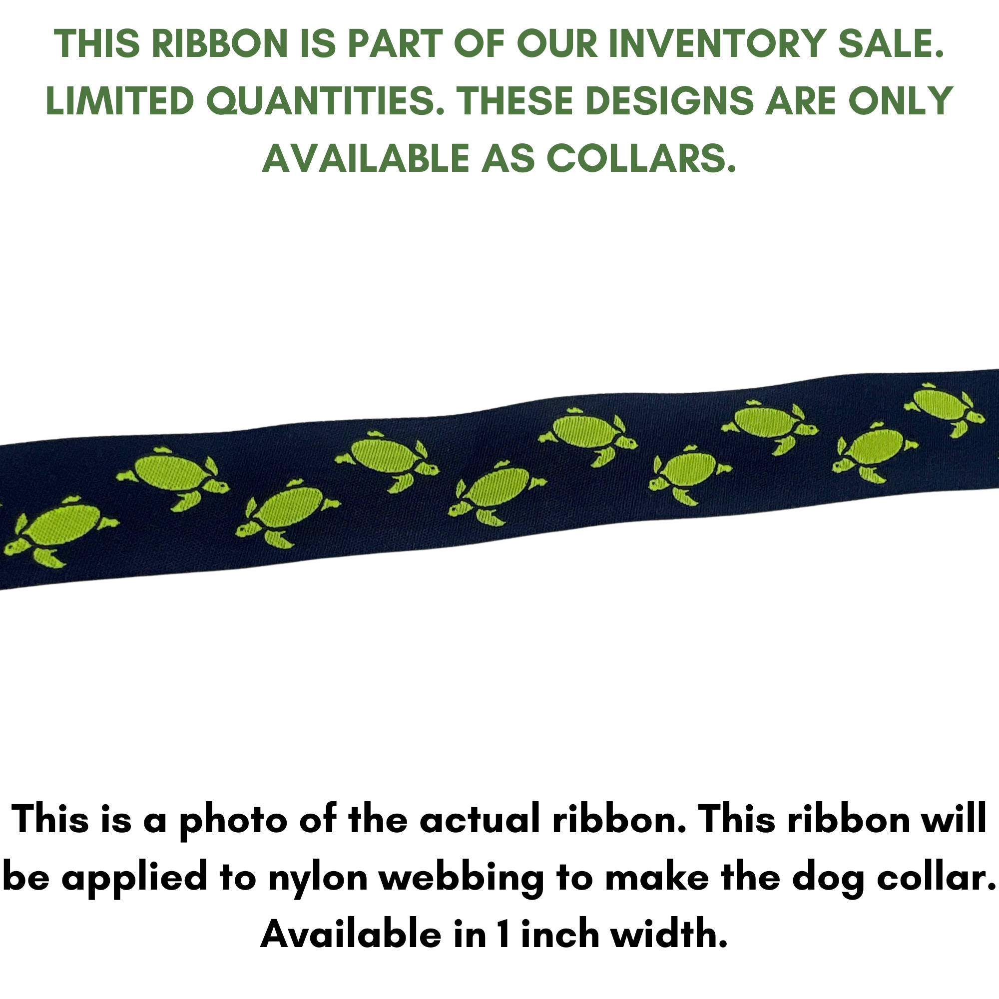 Lime/Navy Sea Turtles jacquard ribbon dog collar.