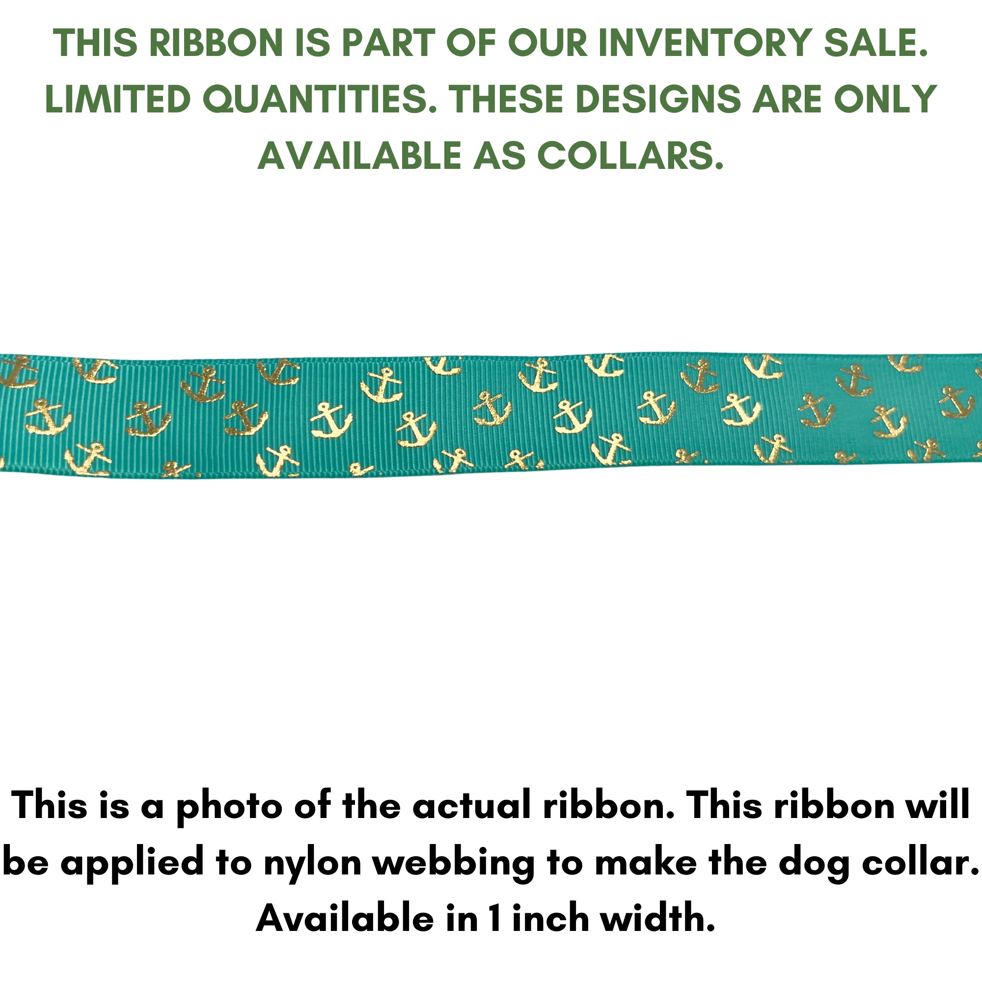 Metallic Gold/Teal Anchors grosgrain ribbon dog collar.