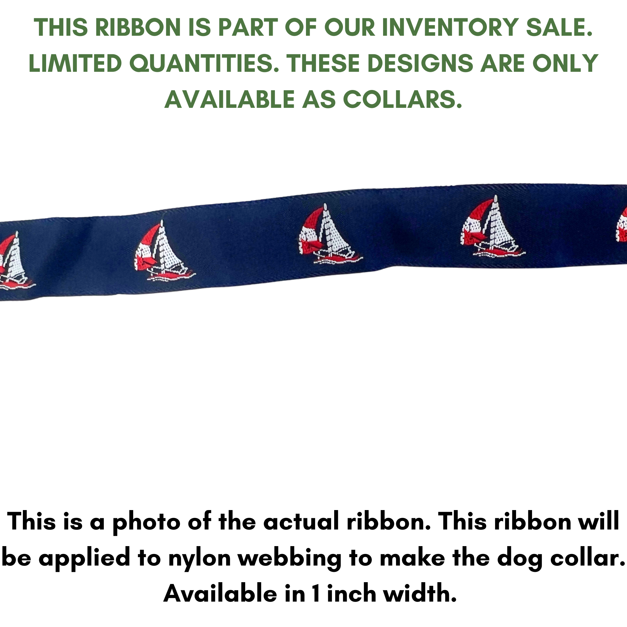 Navy/Red/White Sailboats jacquard ribbon dog collar.